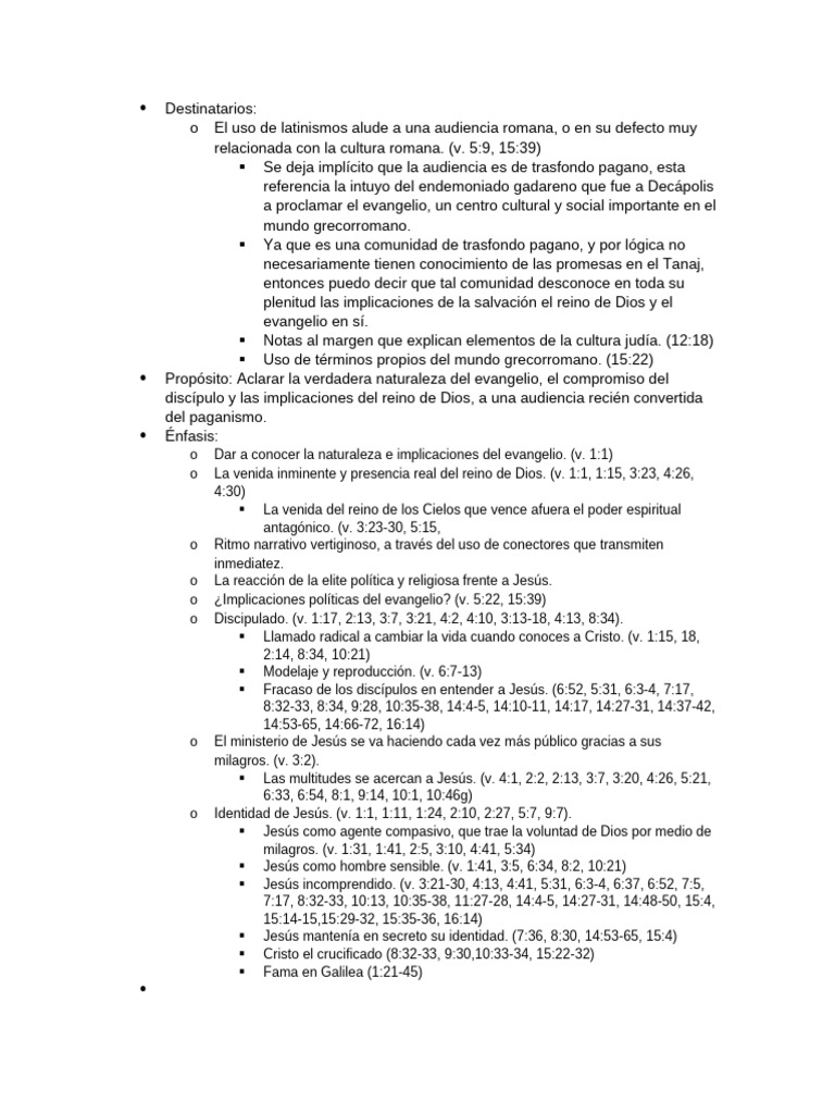 Bosquejo: En mi segunda lectura de Marcos encontré que hay un elemento que