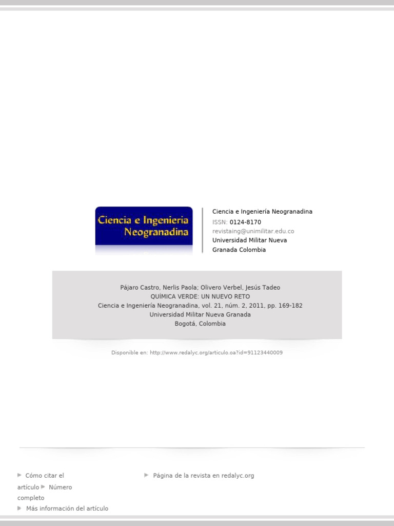 [9] Vargas E., y Ruiz L. (2007). Química Verde en el siglo XXI: Química Verde,