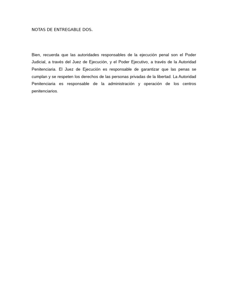 Bien, recuerda que las autoridades responsables de la ejecución penal son el Poder