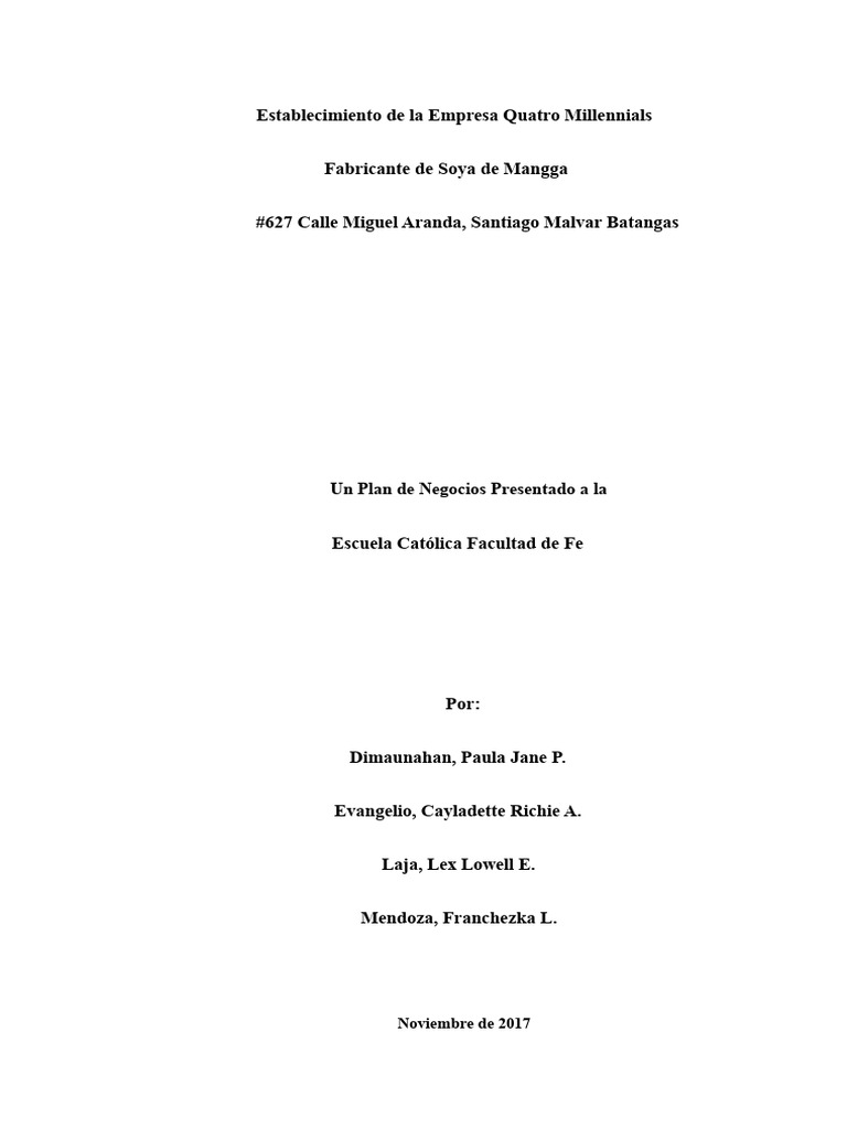 Un Plan de Negocios Presentado a la