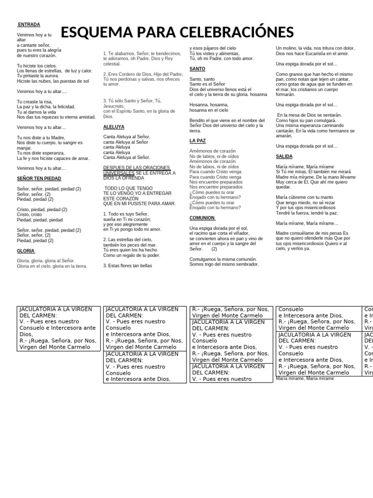 ESQUEMA PARA CELEBRACIÓNES