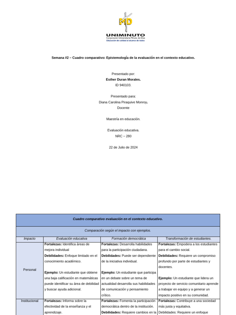 Semana #2 – Cuadro comparativo: Epistemología de la evaluación en el contexto educativo.