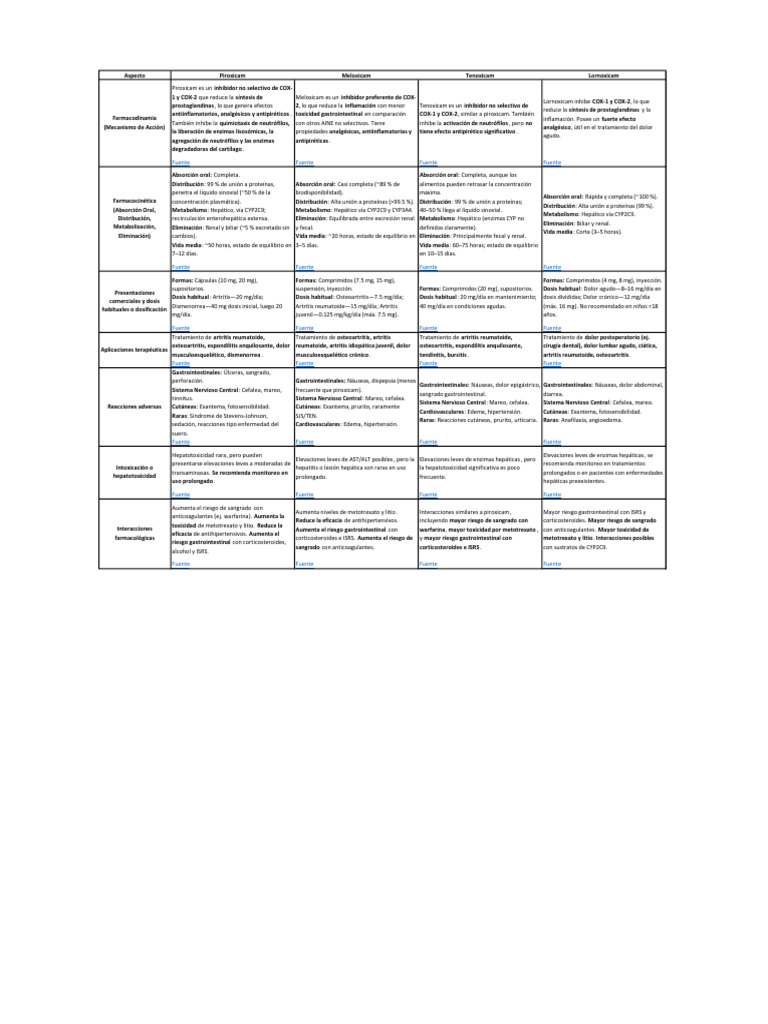 Aspecto Piroxicam Meloxicam Tenoxicam Lornoxicam