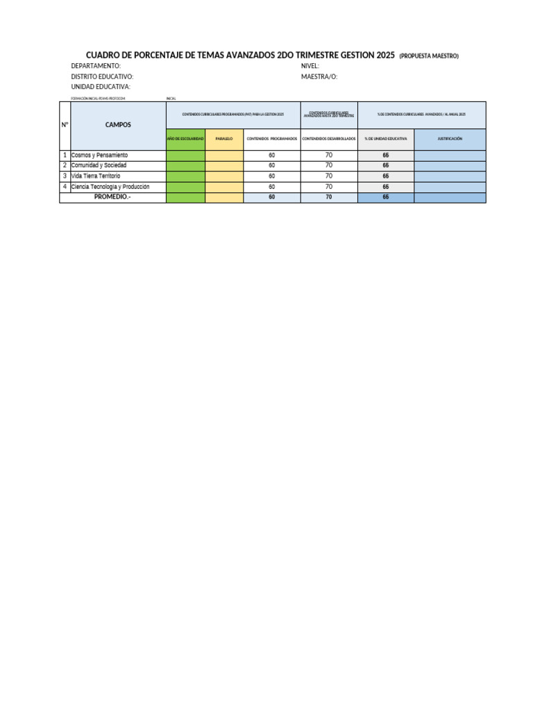 CUADRO DE PORCENTAJE DE TEMAS AVANZADOS 2DO TRIMESTRE GESTION 2025 (PROPUESTA MAESTRO)