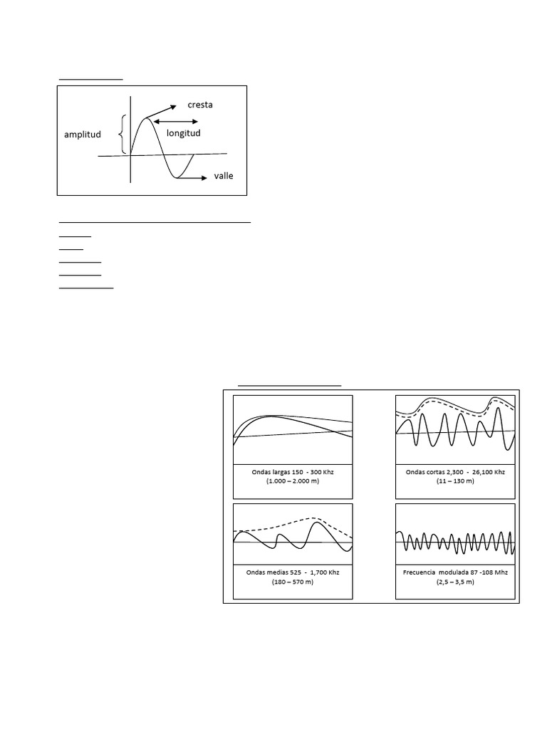 de radioaficionados. Ondas largas 150 - 300 Khz Ondas cortas 2,300 - 26,100 Khz