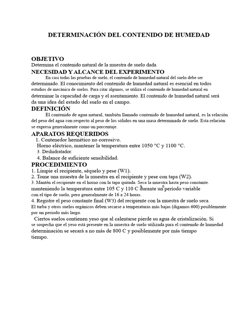 determinado. El conocimiento del contenido de humedad natural es esencial en todos