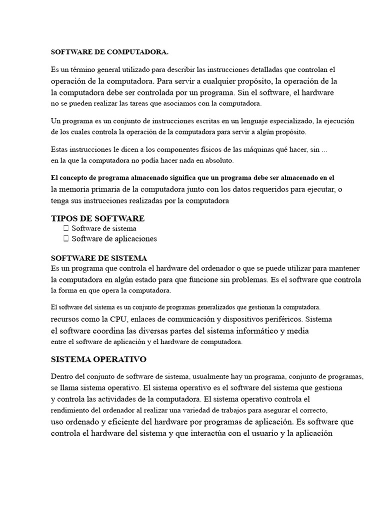 el hardware de la computadora, por lo tanto, es un conjunto de programas diseñados para gestionar