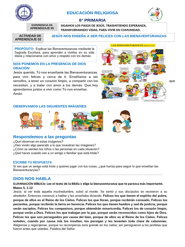 ACTIVIDAD DE JESÚS NOS ENSEÑA A SER FELICES CON LAS BIENAVENTURANZAS