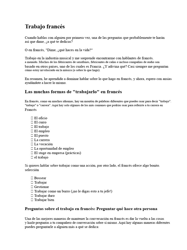Más allá de lo anterior, hay algunos otros términos relacionados con el trabajo en francés que puedes encontrar.