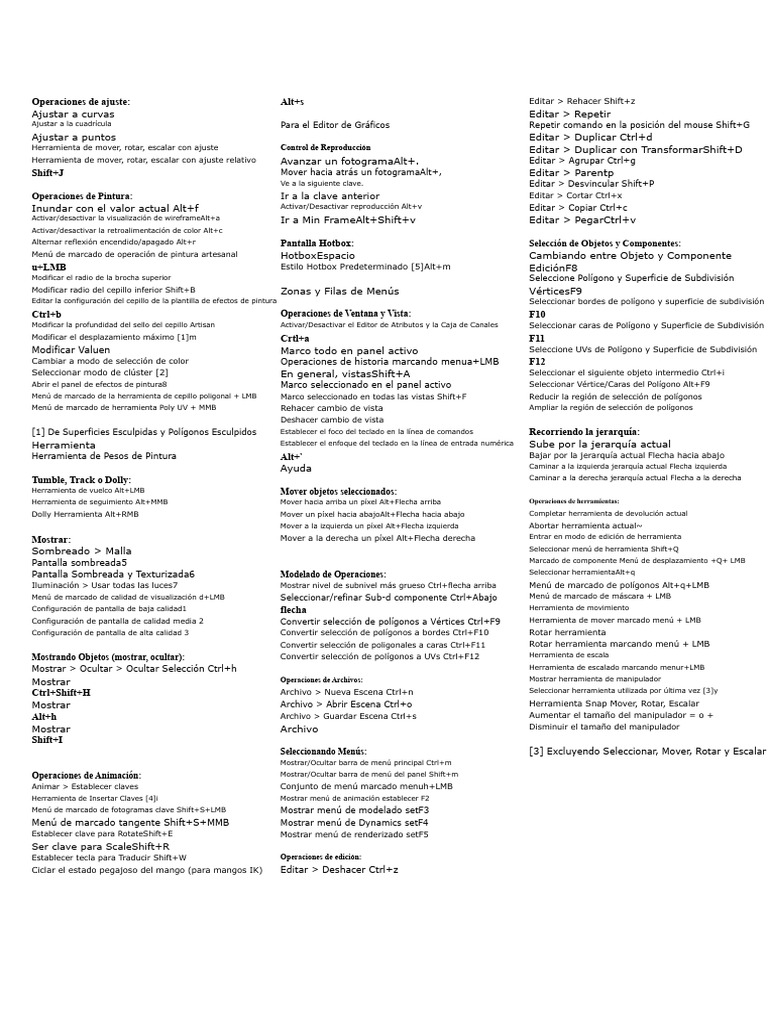 Alt+h Archivo > Guardar Escena Ctrl+s Aumentar el tamaño del manipulador = o +