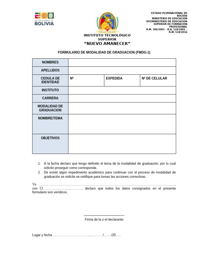FORMULARIO DE MODALIDAD DE GRADUACION (FMDG-1)