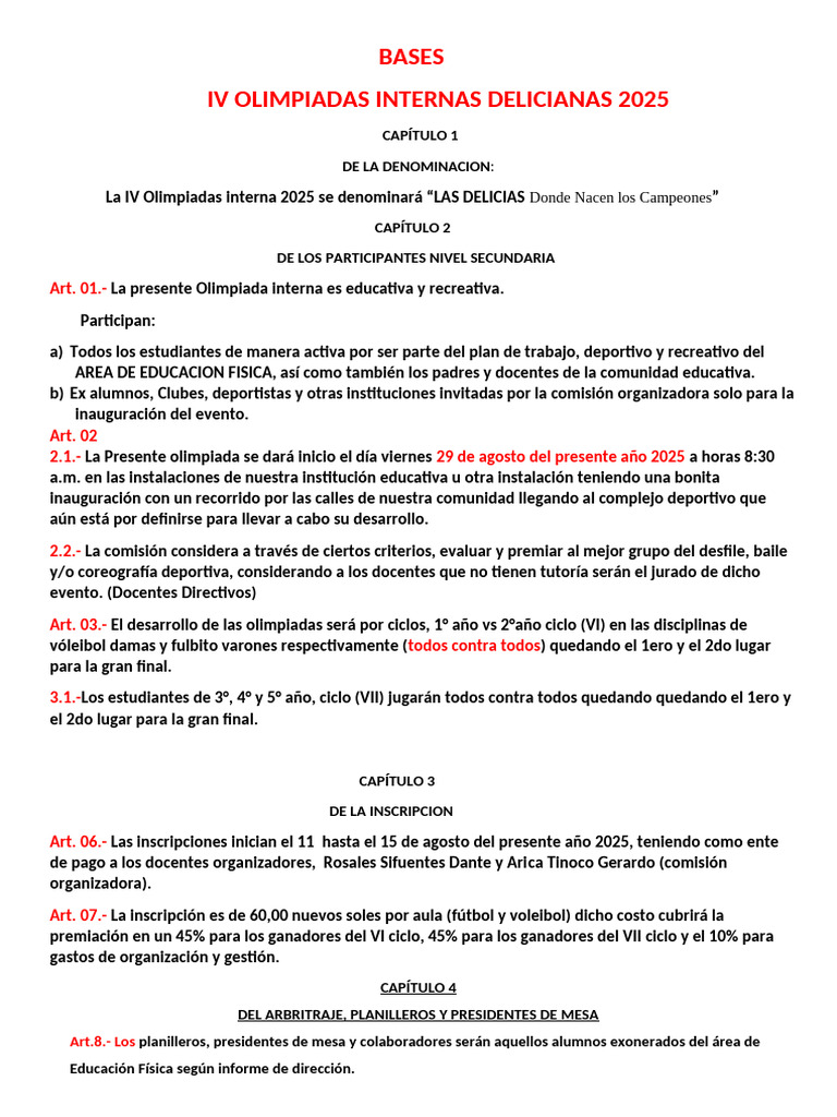Art. 01.- La presente Olimpiada interna es educativa y recreativa.