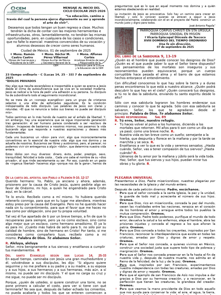 23 tiempo ordinario - C (Lucas 14, 25 - 33) 7 de septiembre de corruptible hace pesada el alma y el barro de que estamos
