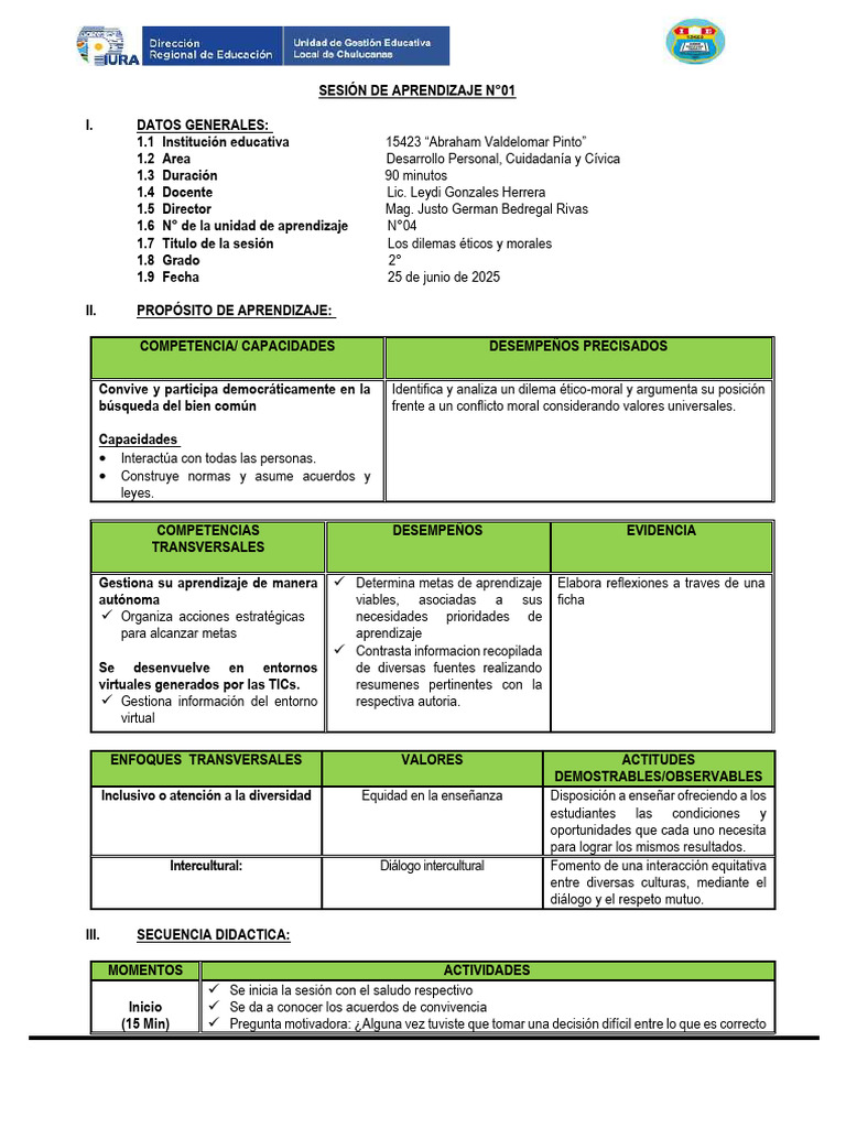 SESIÓN DE APRENDIZAJE N°01