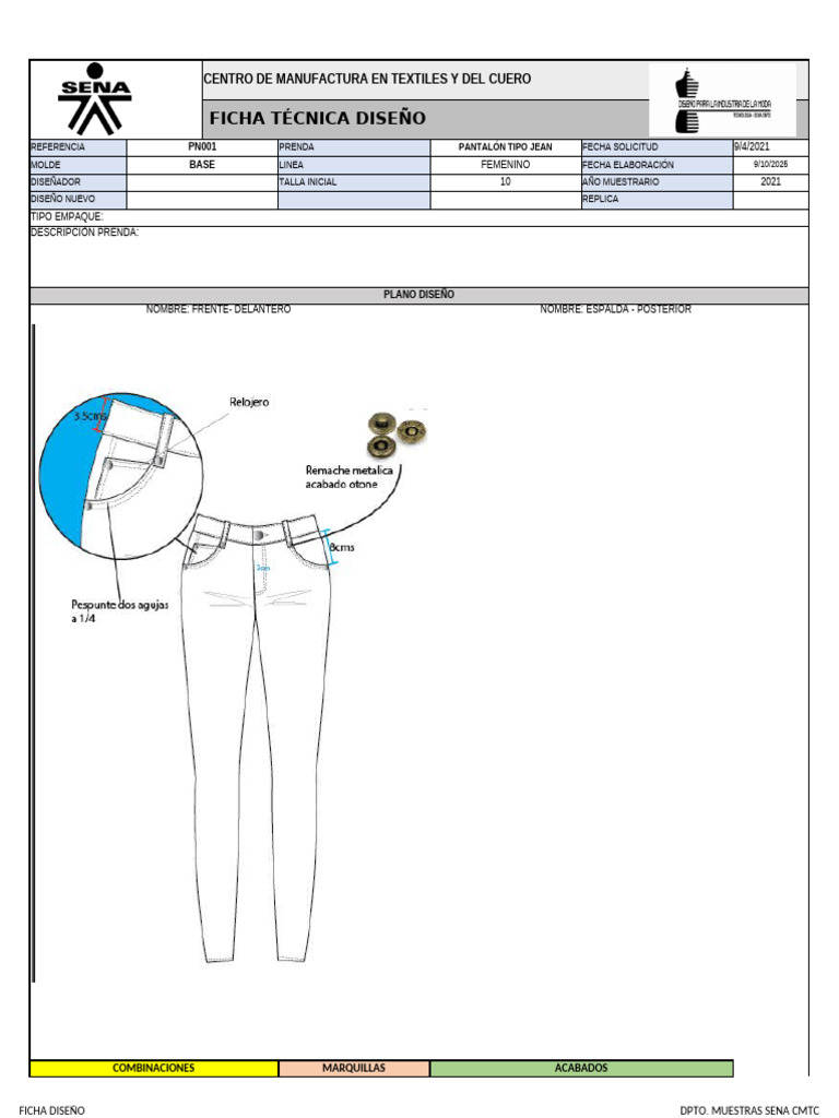 REFERENCIA PN001 PRENDA PANTALÓN TIPO JEAN FECHA SOLICITUD 9/4/2021