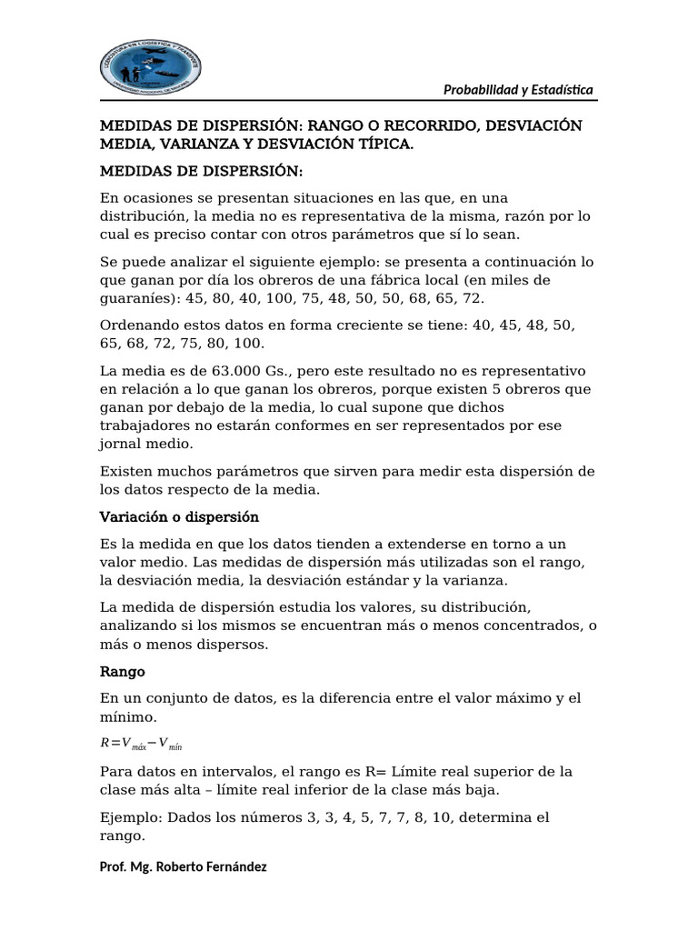 Existen muchos parámetros que sirven para medir esta dispersión de