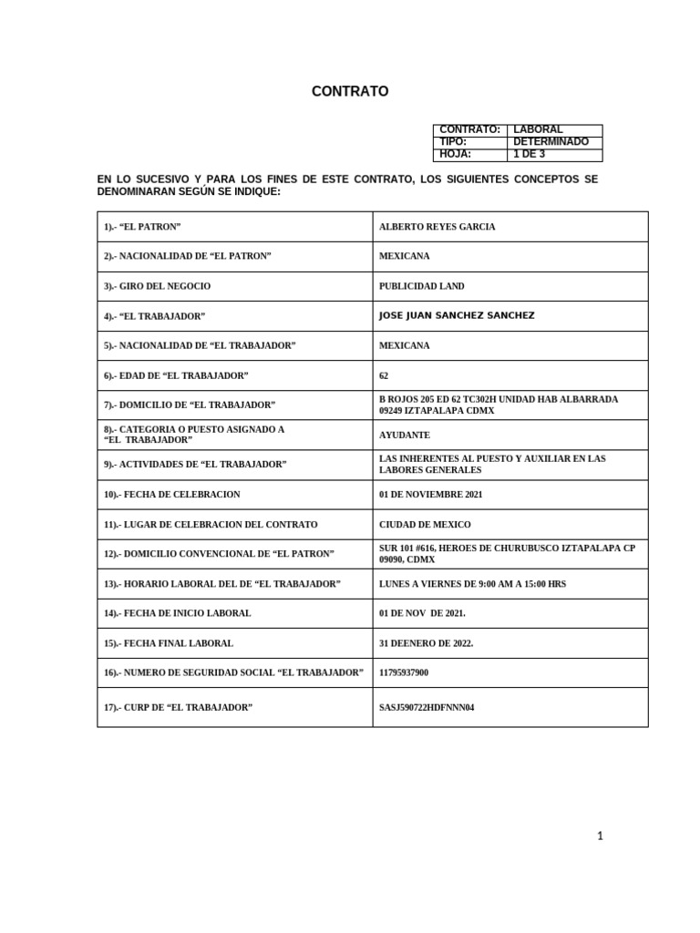 15).- FECHA FINAL LABORAL 31 DEENERO DE 2022.