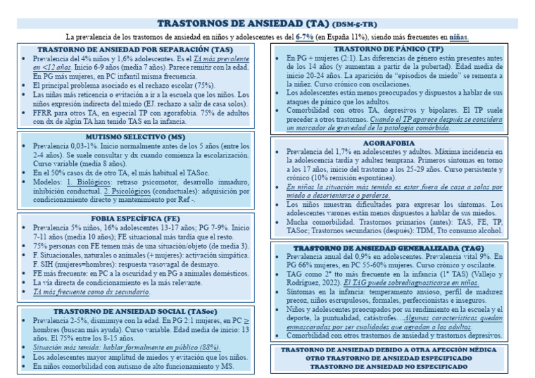 • Prevalencia 5% niños, 16% adolescentes 13-17 años; PG 7-9%. Inicio TASoc; Trastornos secundarios (después): TDM, Tto consumo alcohol.