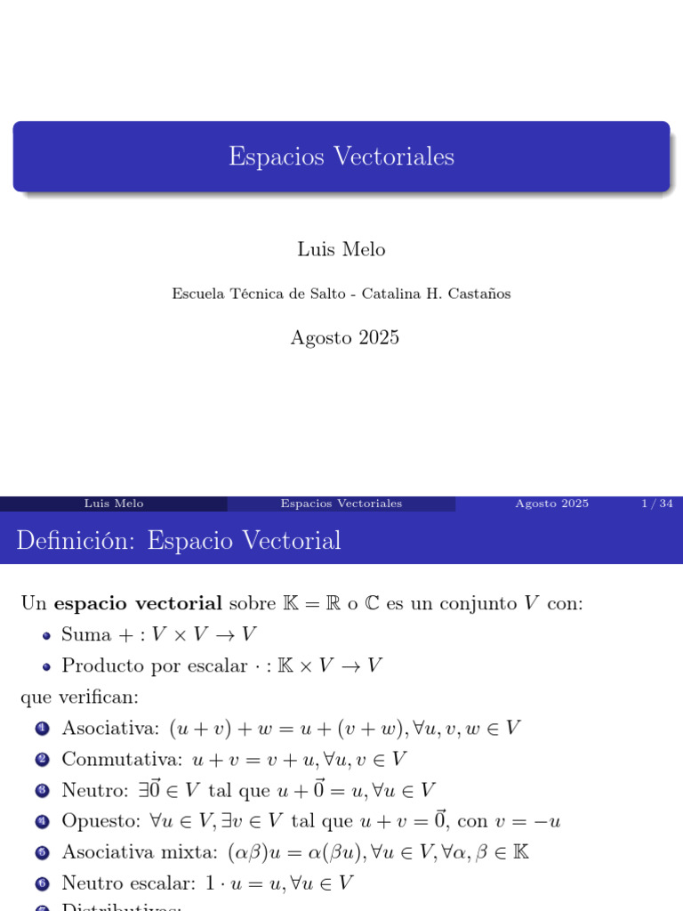 Luis Melo Espacios Vectoriales Agosto 2025 2 / 34