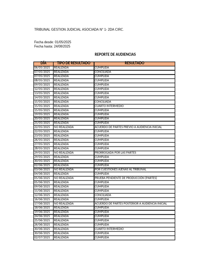 30/07/2025 NO REALIZADA POR CUESTIONES AJENAS AL TRIBUNAL
