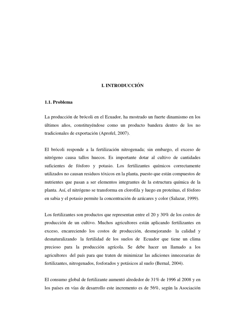 1.1. Problema La produccin de brcoli en el Ecuador, ha mostrado un fuerte dinamismo en los ltimos aos, constituyndose como un producto bandera dentro de los no tradicionales de exportacin (Aprofel, 2007).