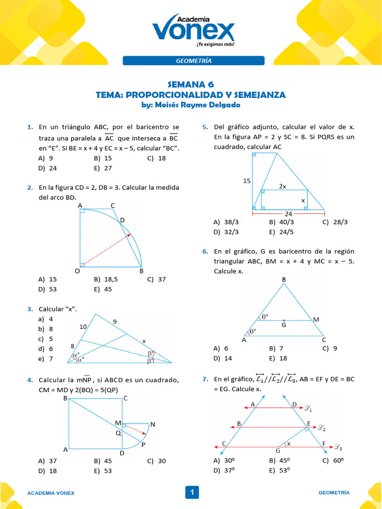 1. En un triángulo ABC, por el baricentro se 5. Del gráfico adjunto, calcular el valor de x.