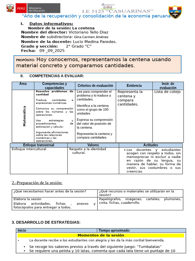 PROPÓSITO: Hoy conocemos, representamos la centena