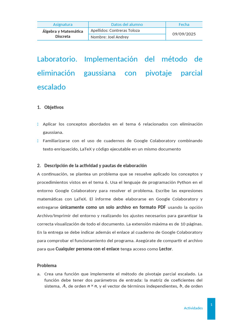 matemáticas con LaTeX. El informe debe elaborarse en Google Colaboratory y