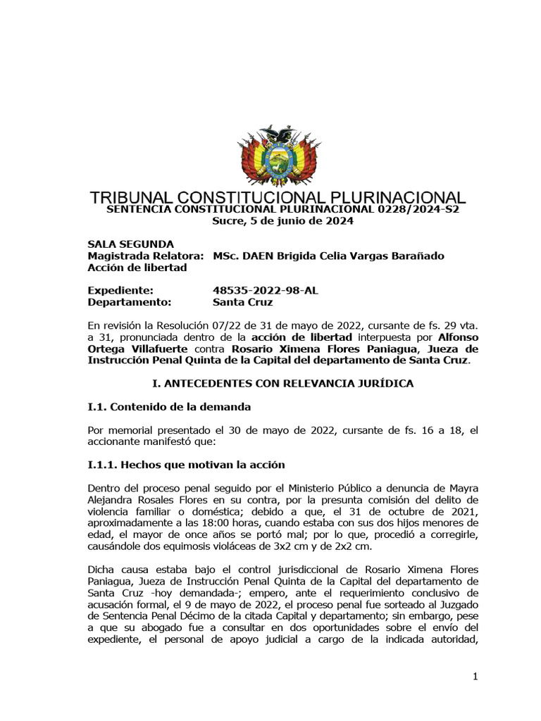 SENTENCIA CONSTITUCIONAL PLURINACIONAL 0228/2024-S2