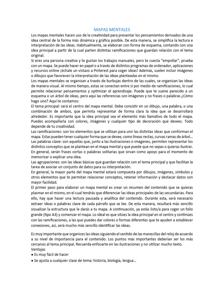 El primer paso para elaborar un mapa mental es crear un resumen del contenido que se quieras