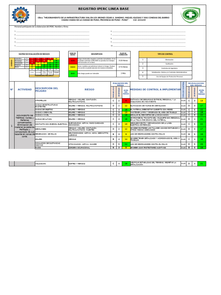 Badén, Cunetas, GOLPES HERIDAS B 4 14 REVISION DE HERRAMIENTAS Y EQUIPOS ANTES DE USAR 3,4,5 C 4 18