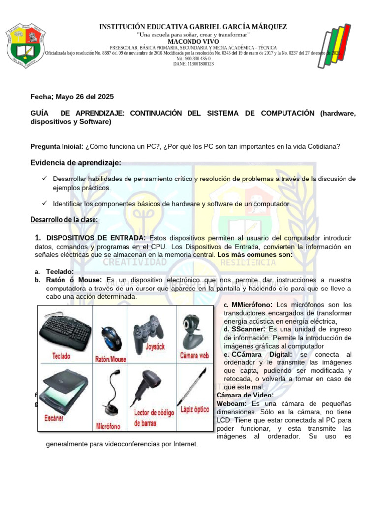 GUÍA DE APRENDIZAJE: CONTINUACIÓN DEL SISTEMA DE COMPUTACIÓN (hardware,