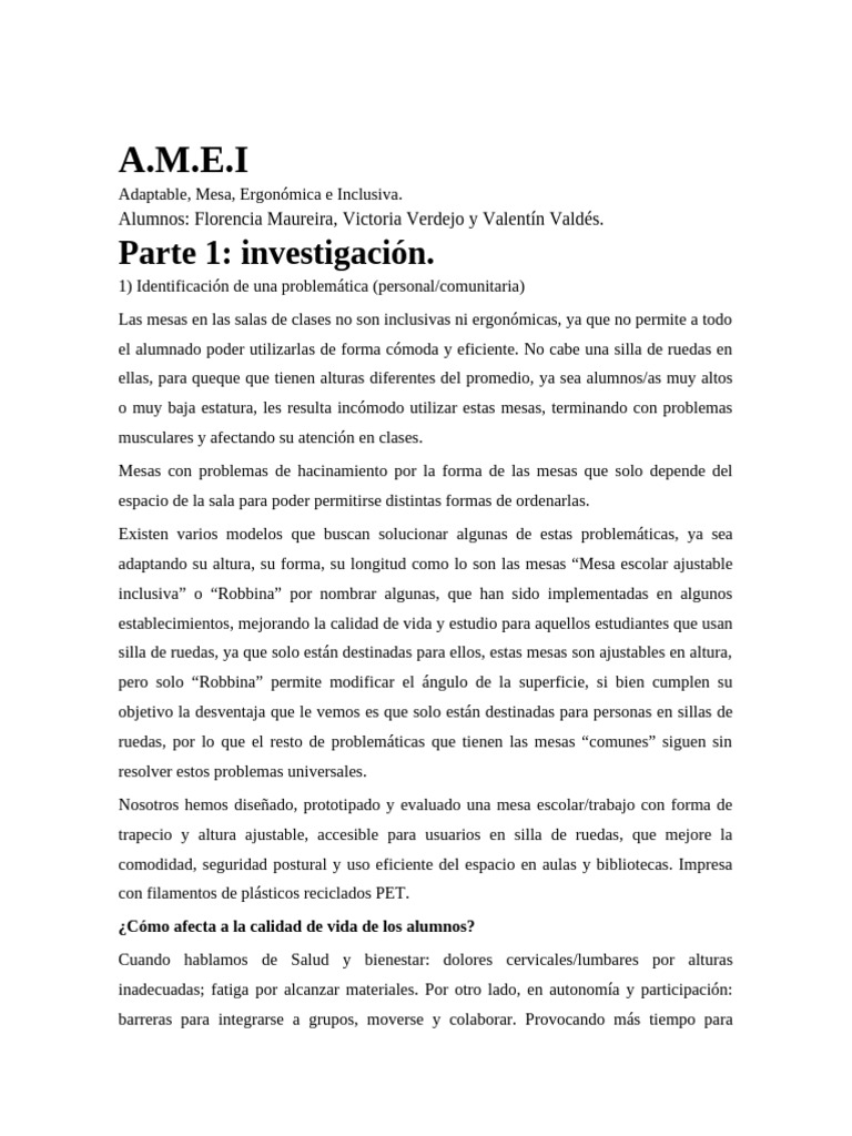 Nosotros hemos diseñado, prototipado y evaluado una mesa escolar/trabajo con forma de