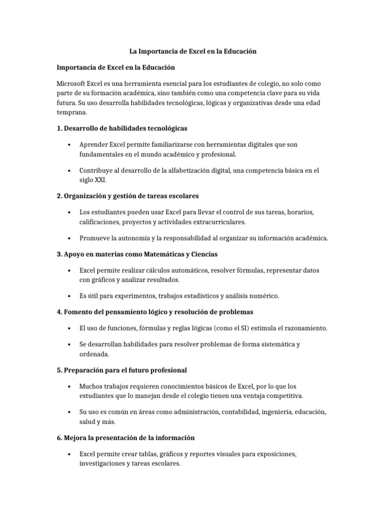 Importancia de Excel en la Educación