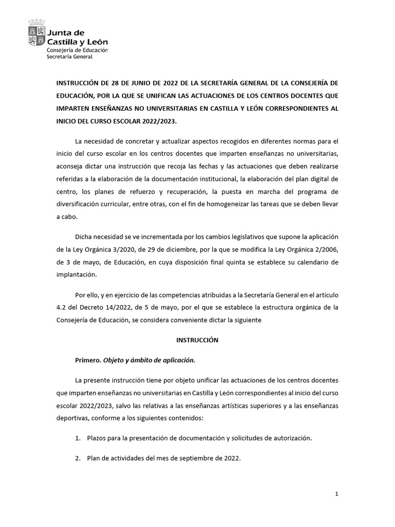 1. Para un correcto inicio y desarrollo del curso 2022/2023, los centros docentes que
