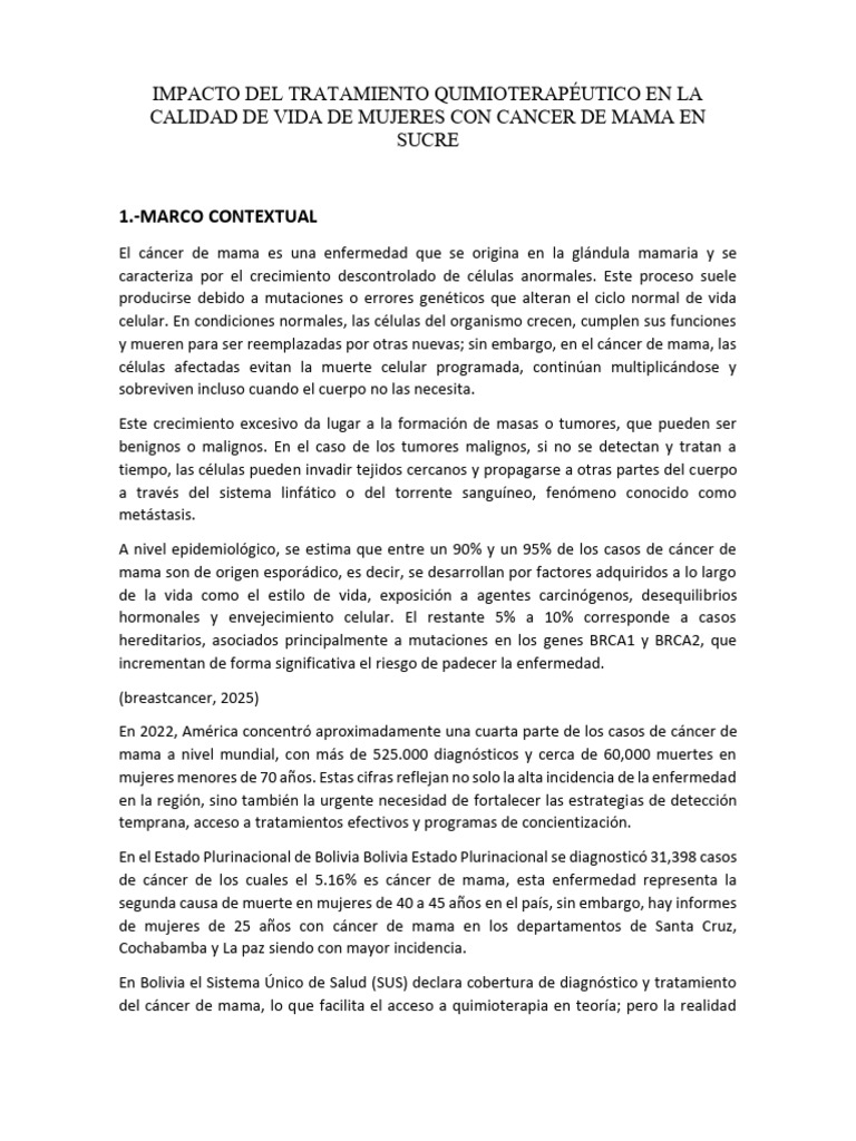 mujeres con cáncer de mama en Sucre” aborda una problemática de alta relevancia en la