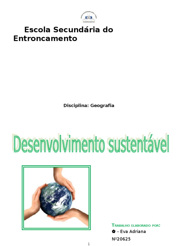 por vezes.0 – Introdução No âmbito da Disciplina de Geografia foi – nos proposto a realização de um trabalho denominado: “Desenvolvimento Sustentável”. pelo que é essencial a sua ponderação antes da sua implementação. As inovações científicas e tecnológicas são uma consequência natural de desenvolvimento.Conhecer os Principais protocolos internacionais e exemplos de instituições nesta área. para a sociedade e para o ambiente.Assimilar Medidas para o desenvolvimento sustentável. são eles: . . Este trabalho tem como objetivo major um maior aprofundamento da temática que viemos a desenvolver ao longo das aulas. um enorme impacto ambiental. . 3 . no entanto estabelecemos alguns objetivos mais específicos. Ao longo do nosso percurso académico pudemos analisar diversas situações onde o Homem gera riqueza com base nos produtos que são limitados e cuja extração ou consumo tem. . porque a maioria das vezes trazem vantagens e desvantagens para o individuo.Compreender o conceito de Desenvolvimento sustentável.Apreender o conceito de Pegada Ecológica. mas têm sempre que ser analisadas.
