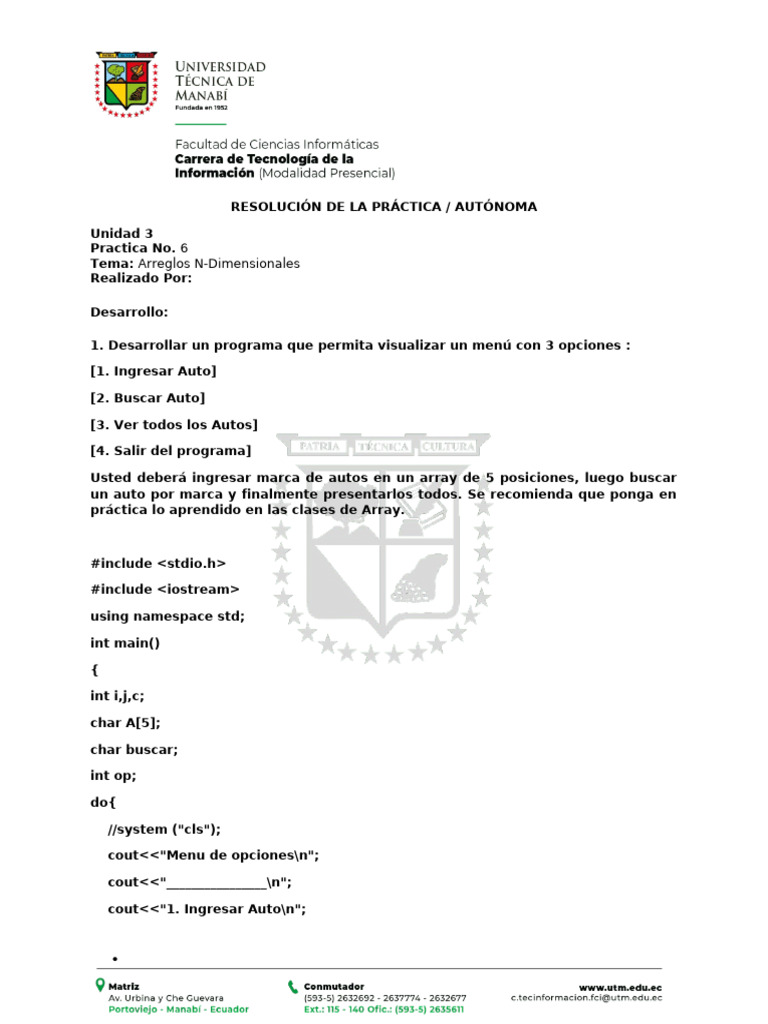 Usted deberá ingresar marca de autos en un array de 5 posiciones, luego buscar