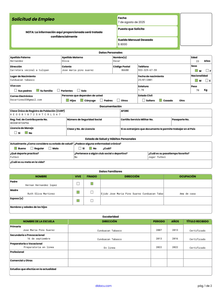 Oscartinez33@gmail.com Hijos Cónyuge Padres Otros Soltero Casado Otro