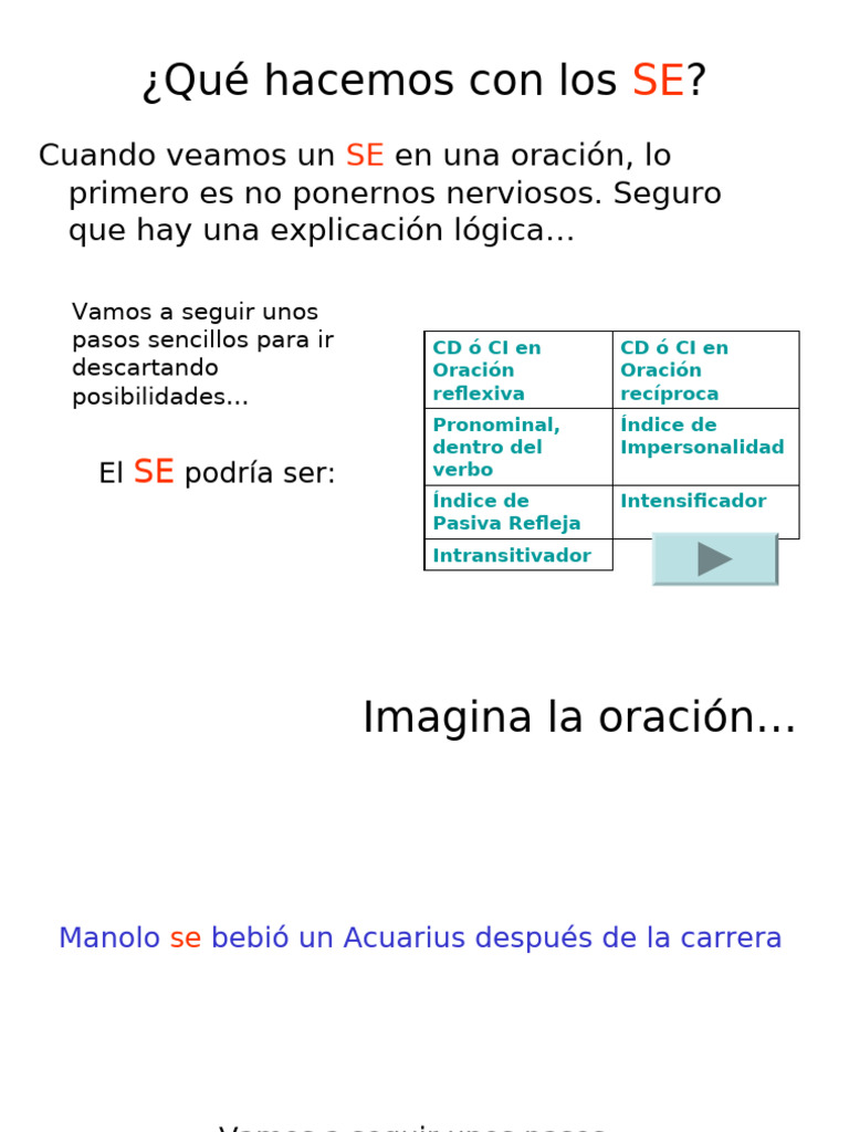 Cuando veamos un SE en una oración, lo