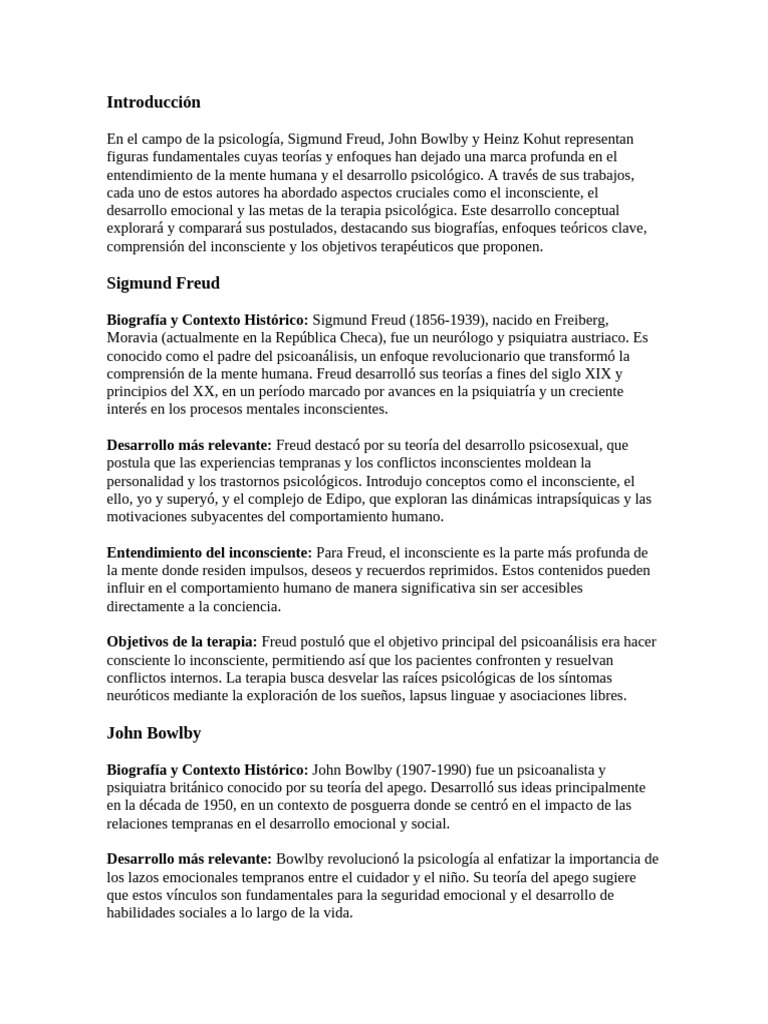En resumen, Sigmund Freud, John Bowlby y Heinz Kohut han proporcionado perspectivas