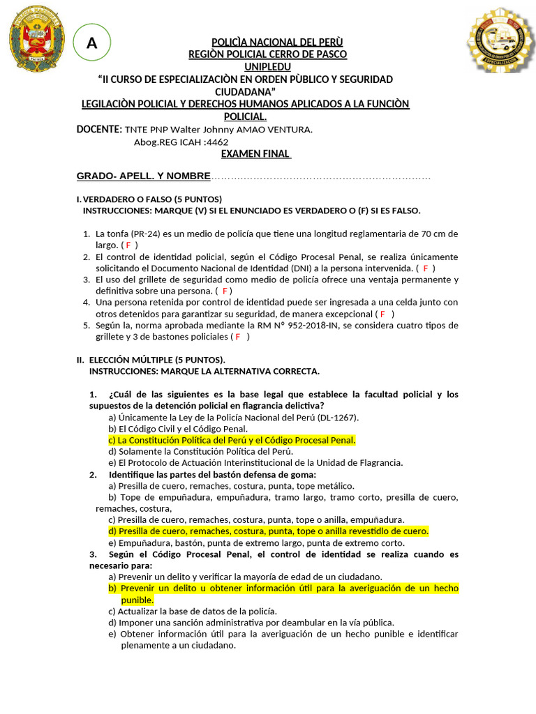 LEGILACIÒN POLICIAL Y DERECHOS HUMANOS APLICADOS A LA FUNCIÒN