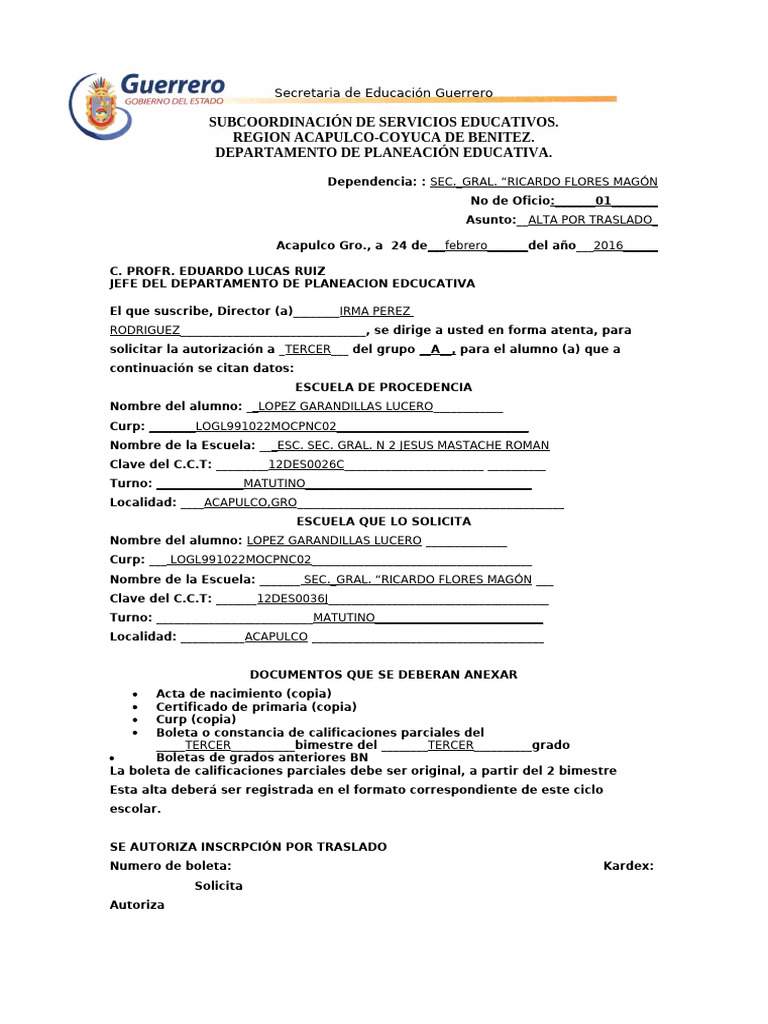 solicitar la autorización a _TERCER___ del grupo __A__, para el alumno (a) que a