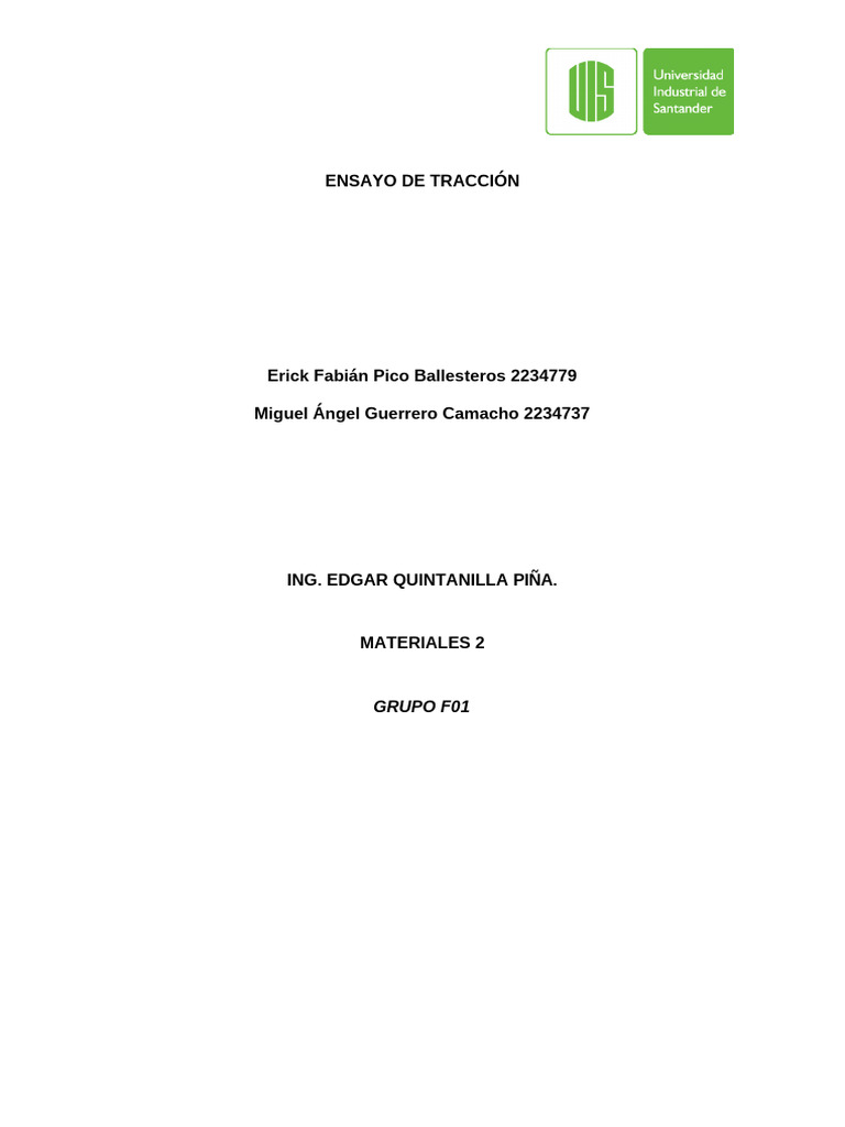 tracción, identificando sus propiedades principales a partir de la deformación