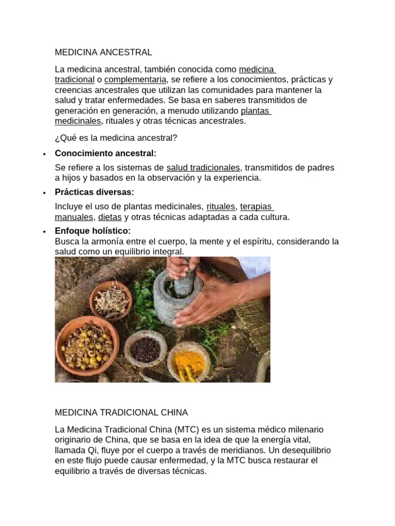 salud y tratar enfermedades. Se basa en saberes transmitidos de