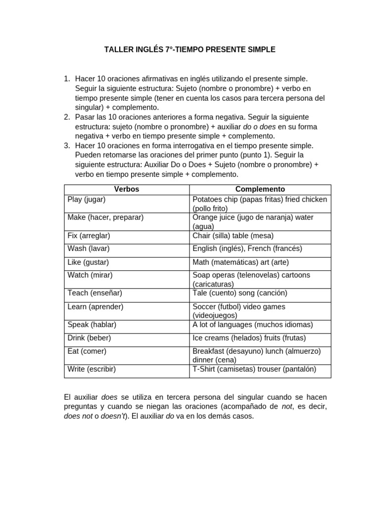 TALLER INGLÉS 7°-TIEMPO PRESENTE SIMPLE