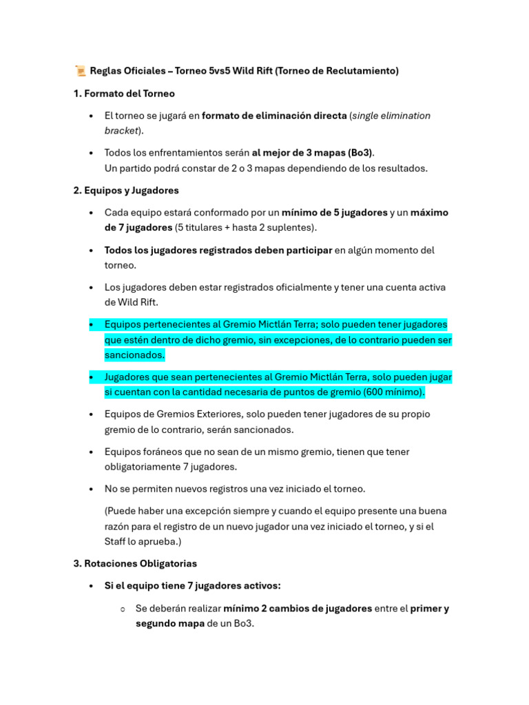 Reglas Oficiales – Torneo 5vs5 Wild Rift (Torneo de Reclutamiento)