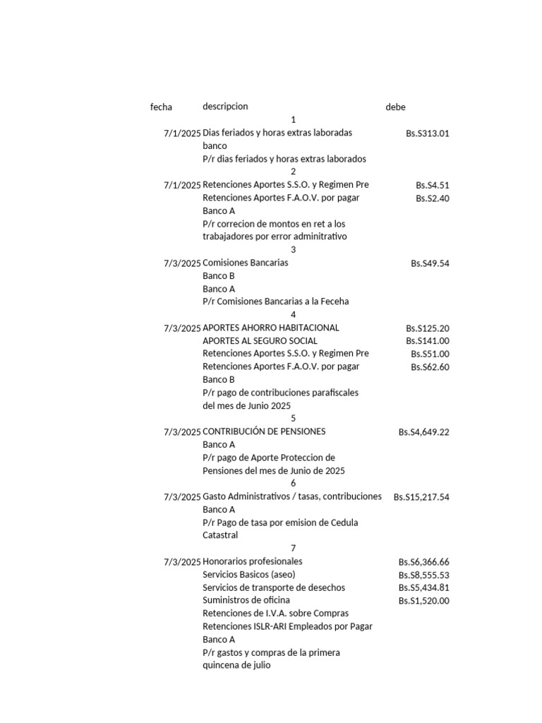 7/1/2025 Dias feriados y horas extras laboradas Bs.S313.01