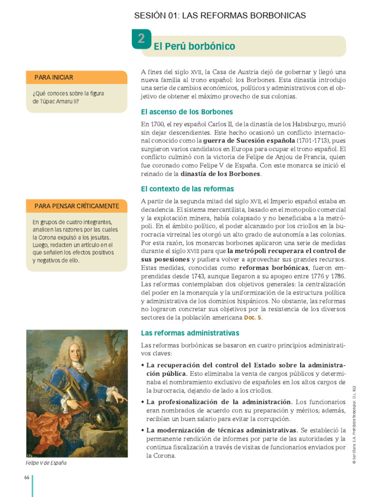 ta por las reformas borbónicas, el Virreinato del Perú General