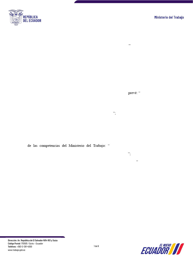 en la normativa legal vigente, para lo cual la entidad rectora de la política laboral y del